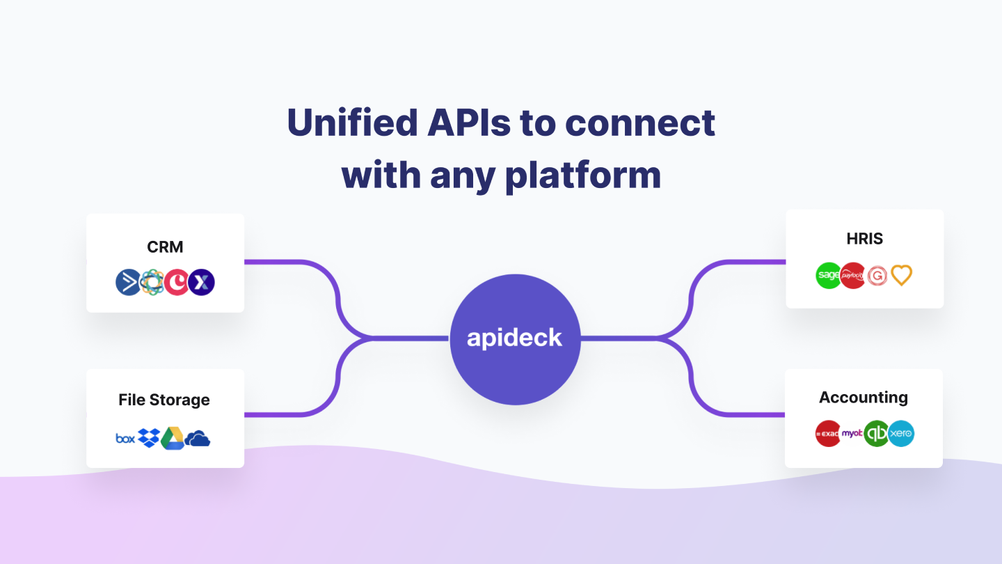 Apideck provides the infrastructure building blocks for B2B SaaS companies to enable them to build and market integrations through one platform. Our Unified APIs standardise APIs across different software categories for a better Developer Experience.