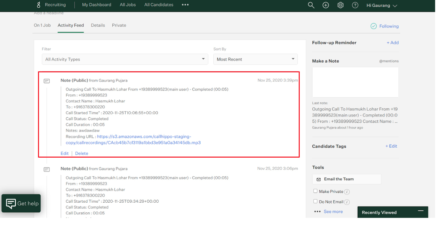 Greenhouse and CallHippo Integration helps you make calls directly from the Greenhouse dashboard to candidates, and schedule a reminder to make calls as well.