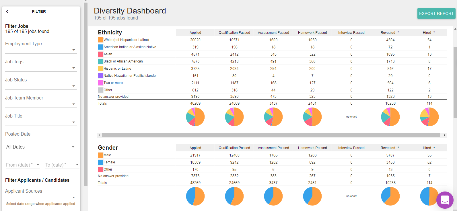 See a detailed view of how candidates are progressing through the anonymous process for your jobs. This feature provides a detailed breakdown of the number of candidates that are both qualifying and disqualifying and why. Easily adjust the criteria in the hiring funnel to better align which candidates become qualified based on your job needs.