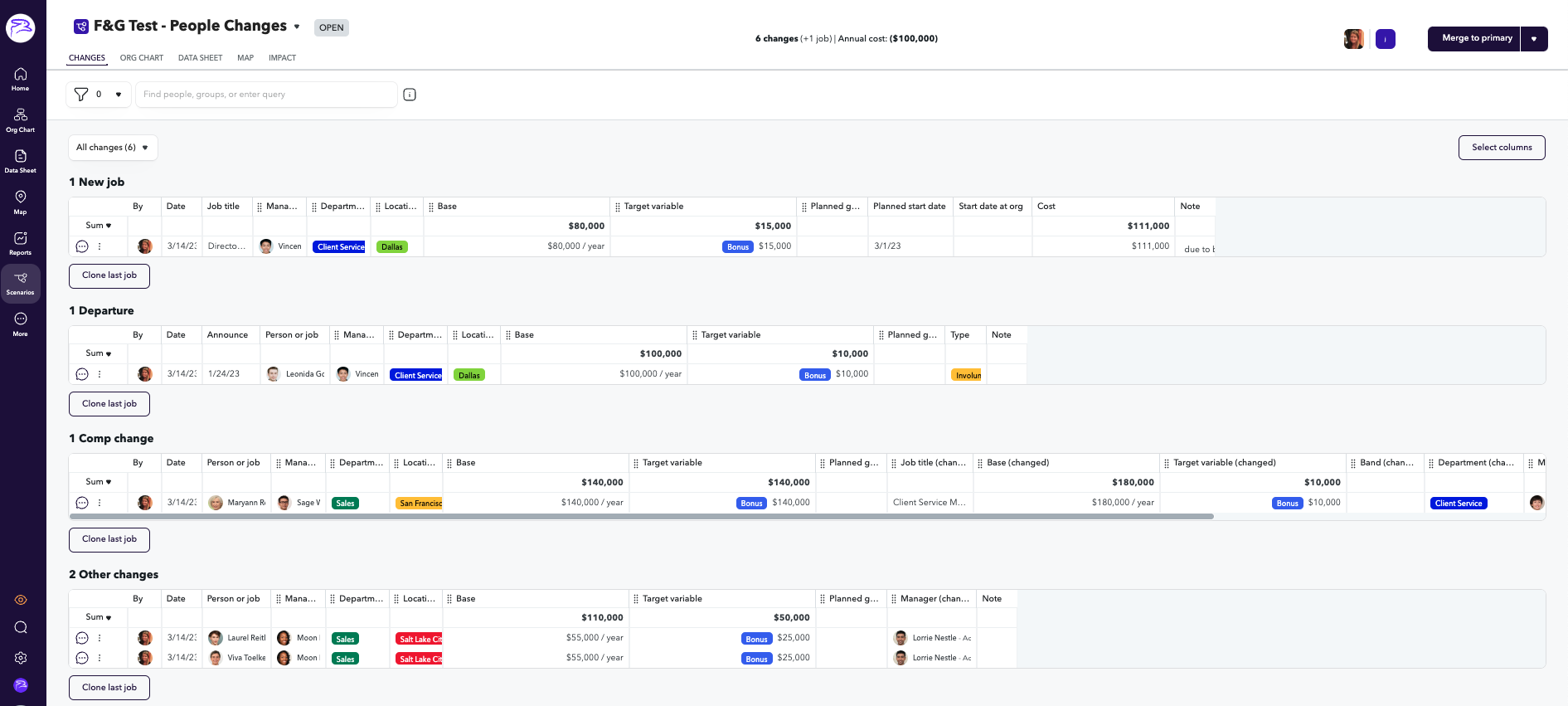 Use real-time, dynamic data to model and collaborate on planning scenarios in ChartHop and immediately kick off hiring approved roles in Greenhouse. Beyond planning, ChartHop also offers a best-in-class dynamic org chart, robust people analytics, performance reviews, compensation reviews, engagement surveys and more.