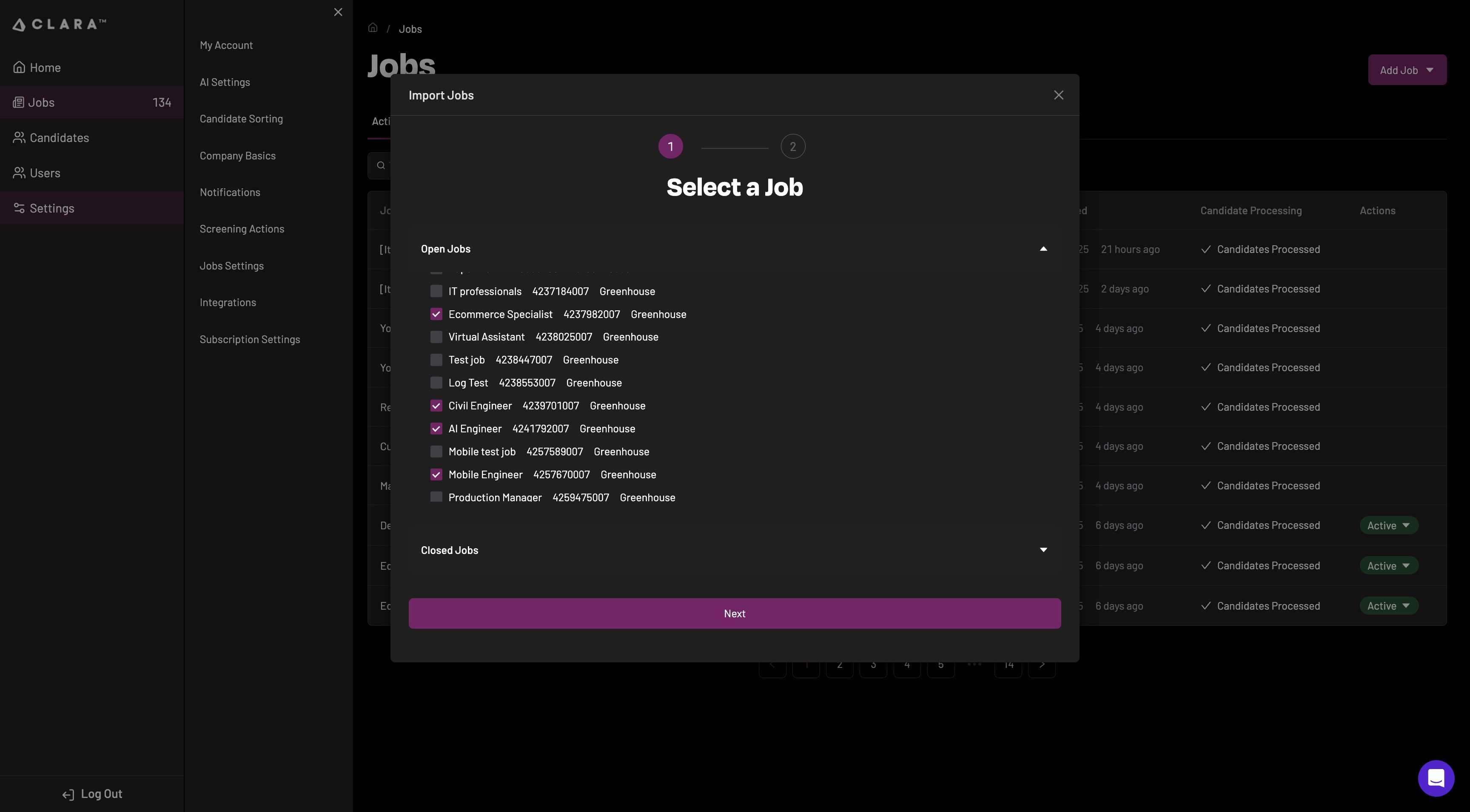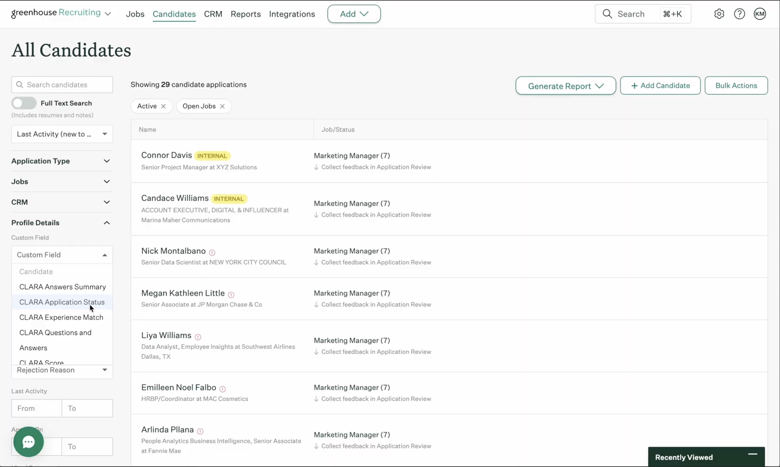 CLARA connects directly with Greenhouse and other leading ATS platforms. All CLARA data flows back into your existing workflows—so you get better insights without disruption.
