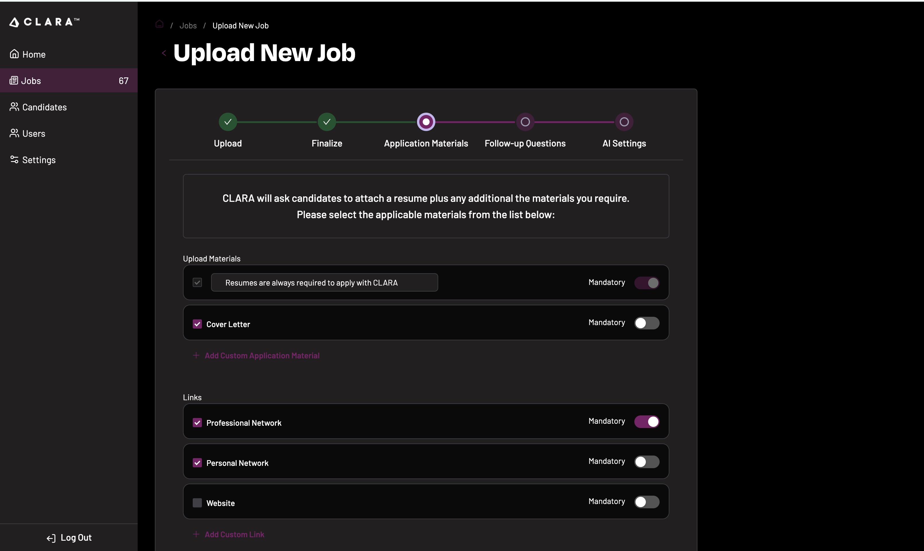 Most hiring tools were built for a different era—manual resume scans, keyword filters and workflows that are slow, biased, and expensive. CLARA is different.