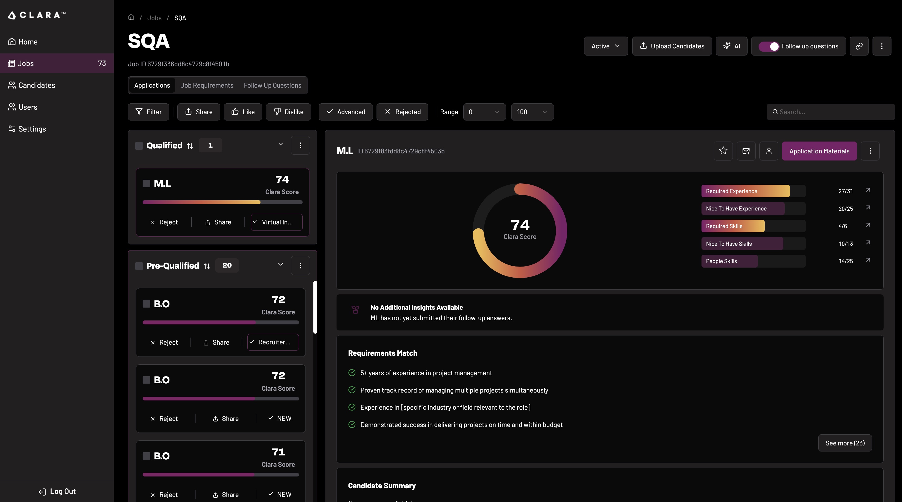 CLARA is an AI-powered applicant screening and enrichment tool that helps recruiters balance equity with efficiency to find the best candidates faster.