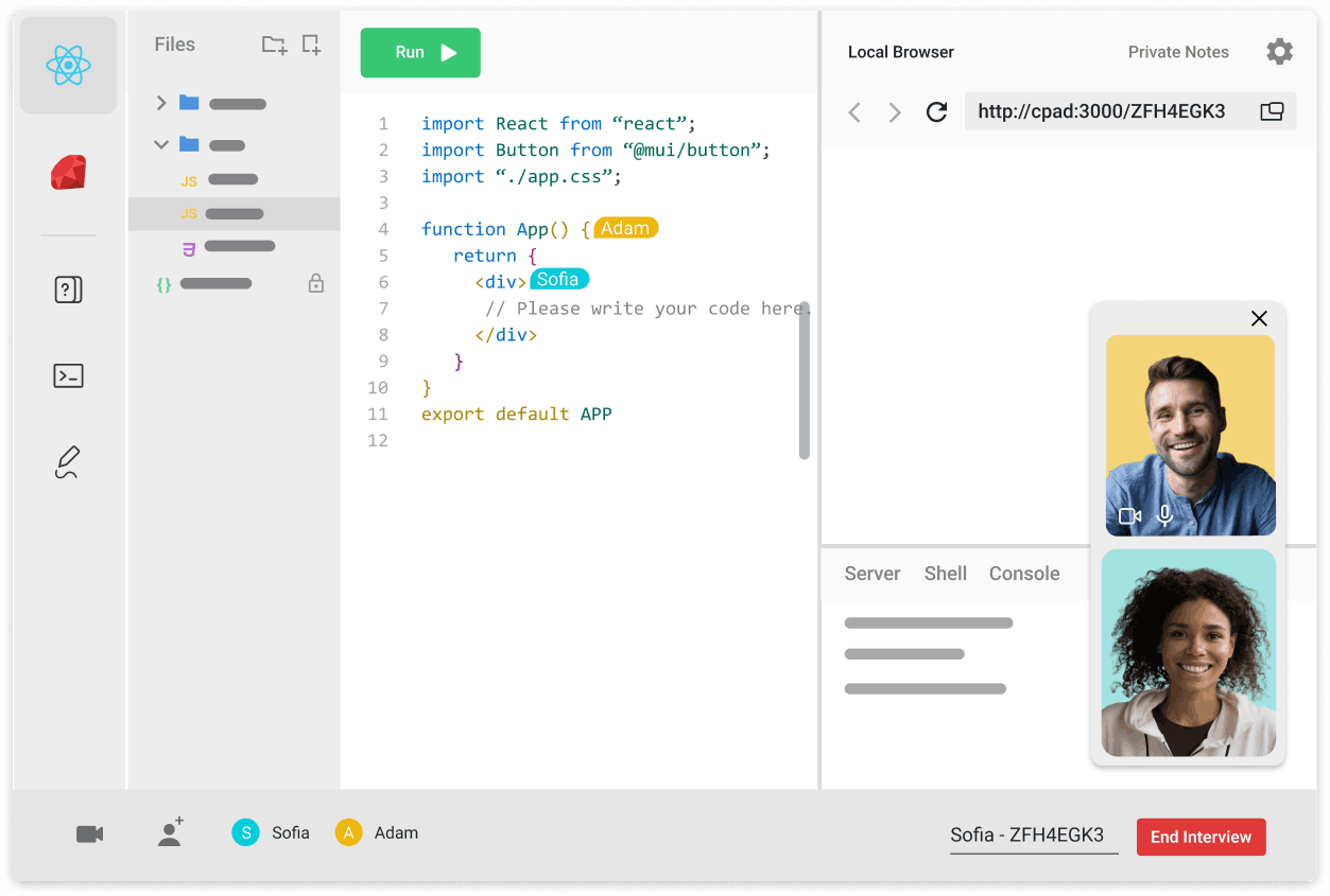 CoderPad is the leading technical interview platform for teams that need a simple, fast solution to help accurately assess candidates throughout the hiring stages. It works like an IDE to emulate real world scenarios and is easily personalized to specific development team needs - ensuring a positive experience for both the candidate and the interviewer.