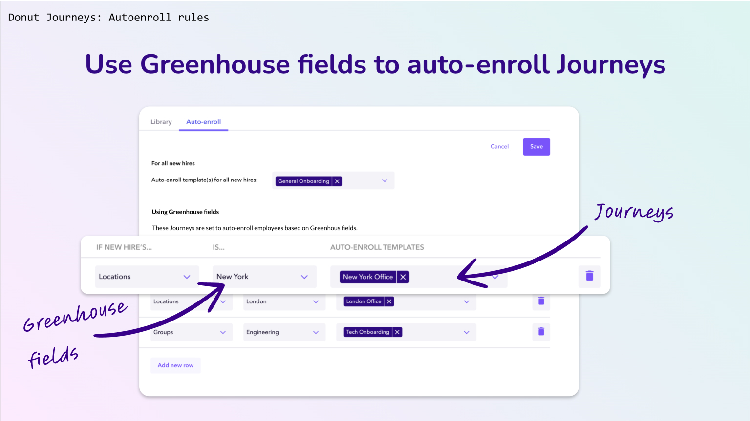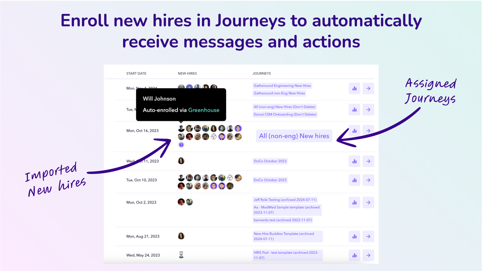 Use synced info to automatically assign new hires to the best Journey for their role or location.