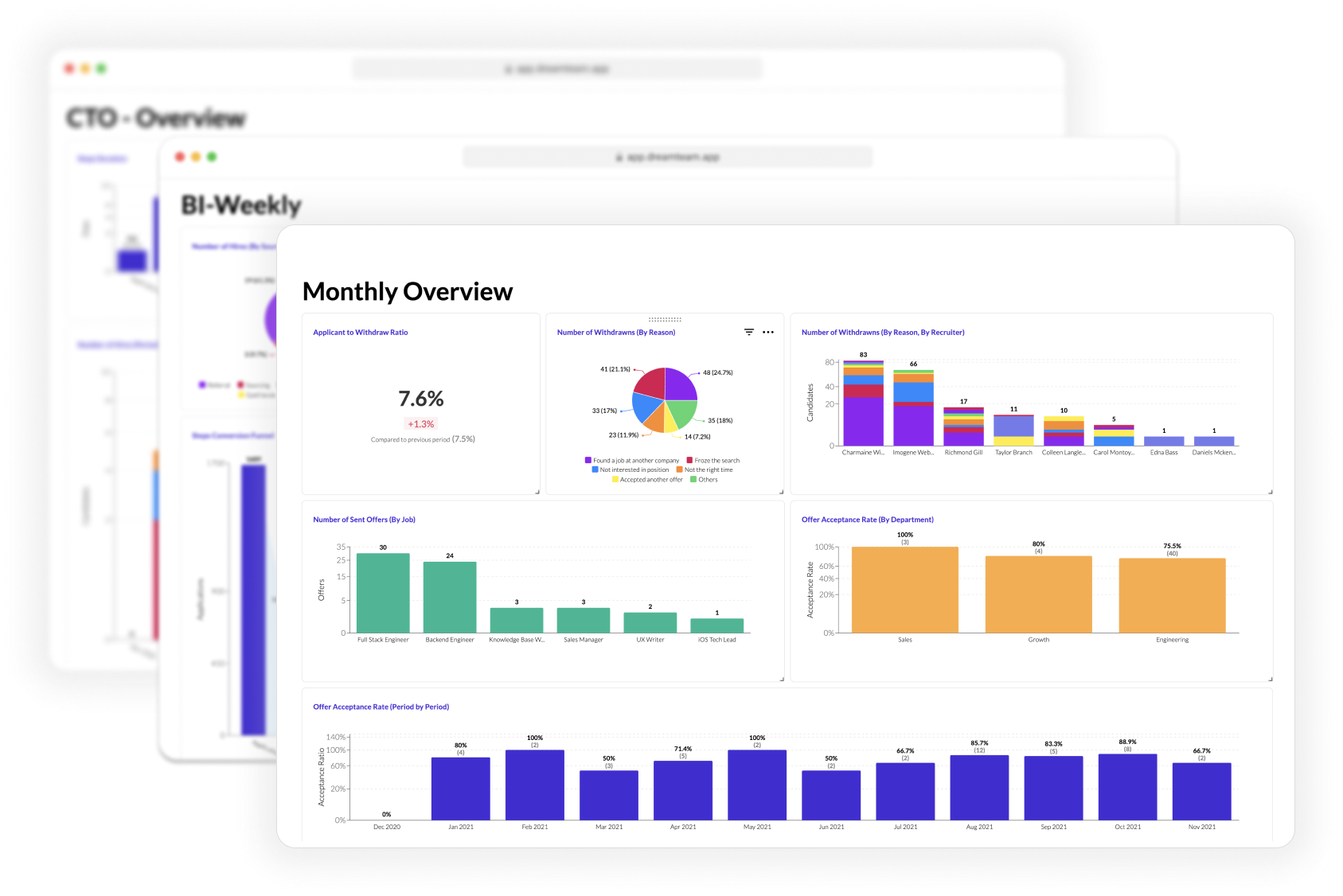 With pre-built templates, and customizable insights, you can find an answer to any question. Unlock your ATS data and use DreamTeam as your single source of truth. Image Caption: