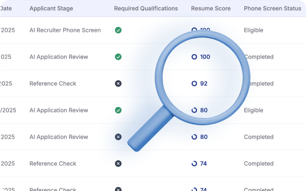 Setup your screen and tell our agent when to go to work and it’ll connect with candidates who enter the appropriate stage in an engaging and impactful phone screen that candidates love! Minimize the scheduling and clear the chaos from the top of your recruiting funnel.