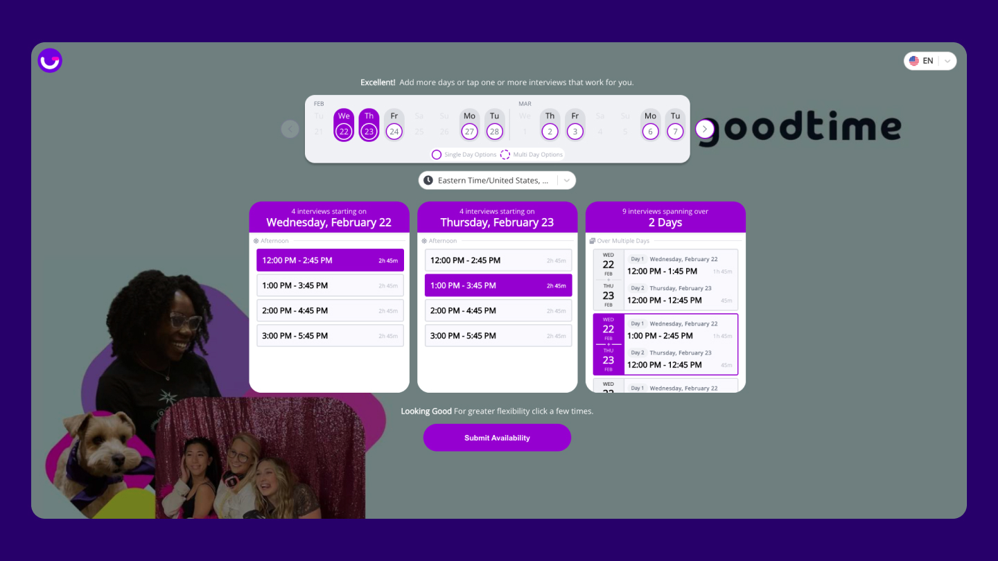 GoodTime is the leader in complex interview scheduling automation for Greenhouse teams. From multi-day panels to high-volume coordination across global time zones, GoodTime removes the manual work that slows hiring down.
