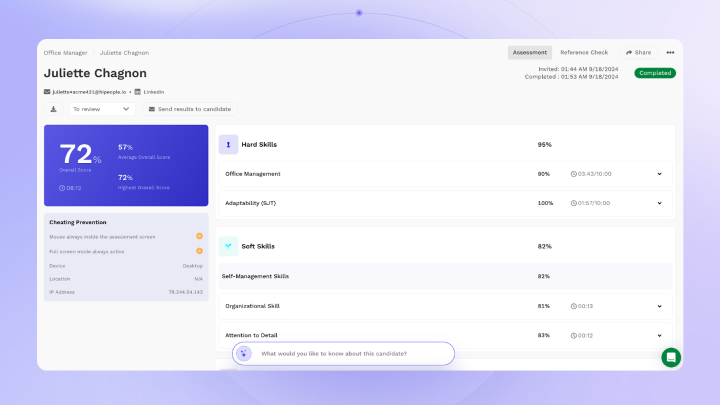 Automate and streamline your hiring process with HiPeoples AI-powered assessments and reference checks. Seamlessly integrated with Greenhouse, HiPeople offers customizable, science-backed tools that evaluate candidates’ skills, potential, and background. Reduce bias and promote diversity by focusing on objective data instead of personal characteristics. With automated reference checks, fraud detection, and a fully compliant platform, you can save time and ensure a smooth candidate experience. HiPeoples integration enhances your Greenhouse workflows by providing actionable insights, speeding up hiring, and improving decision-making.