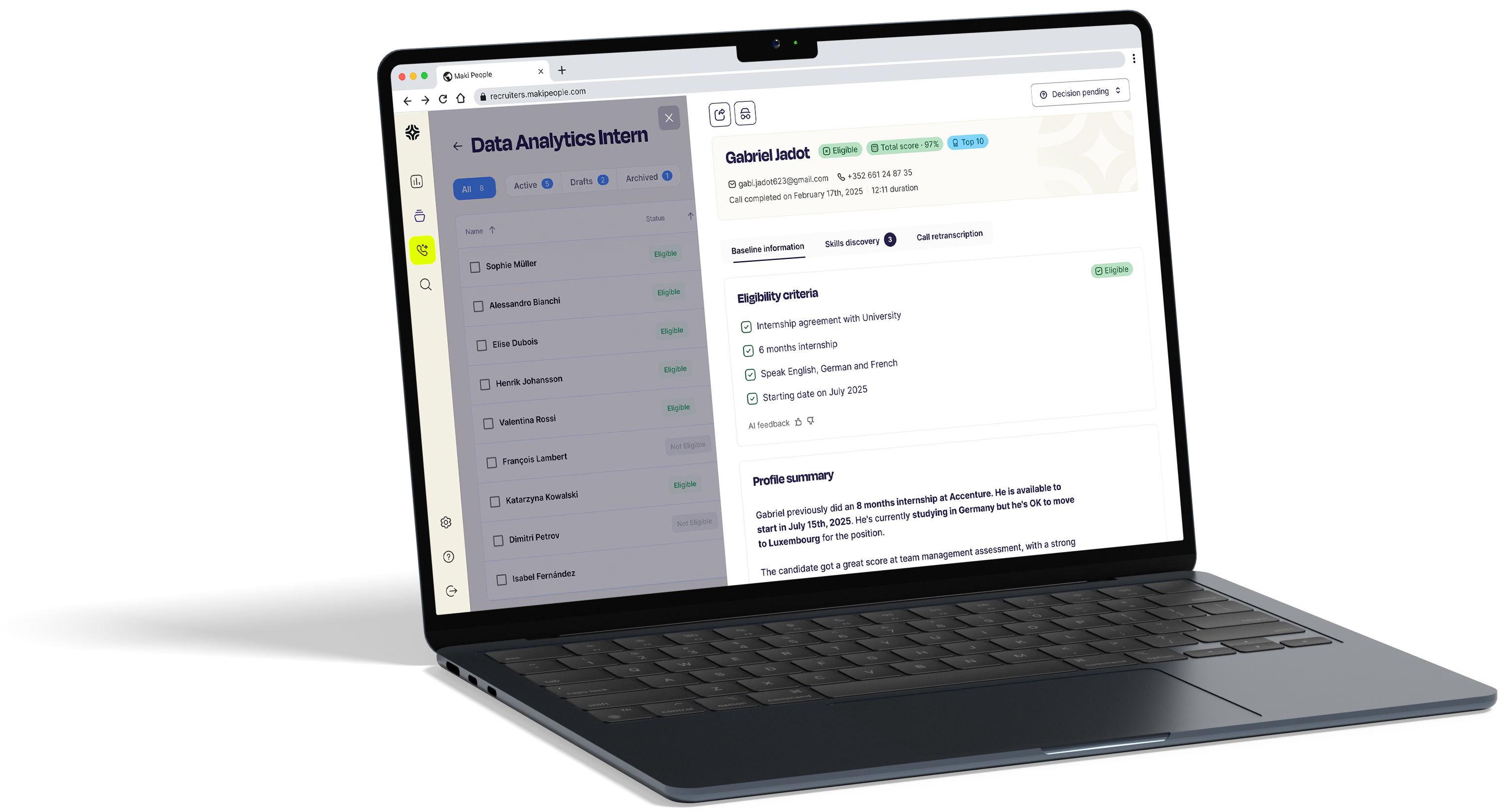 Maki automates hiring with AI, from screening to offers, improving candidate experience and speeding confident decisions.