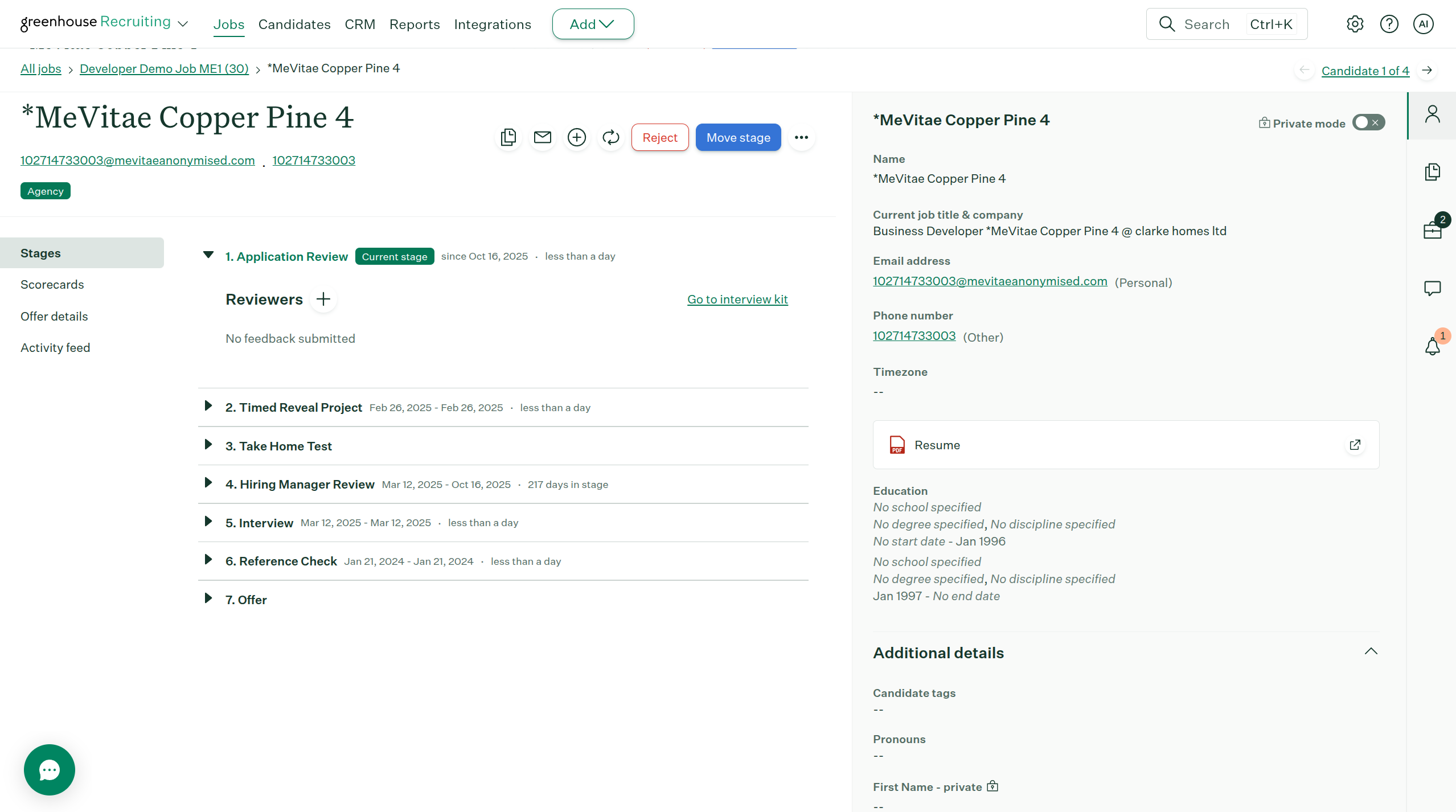 MeVitae's gold standard of anonymized recruiting solution redacts more than 30 parameters with 95% accuracy, ranging from gender and ethnicity to university names, across all candidate documents, including resumes, cover letters and transcripts, directly within Greenhouse.