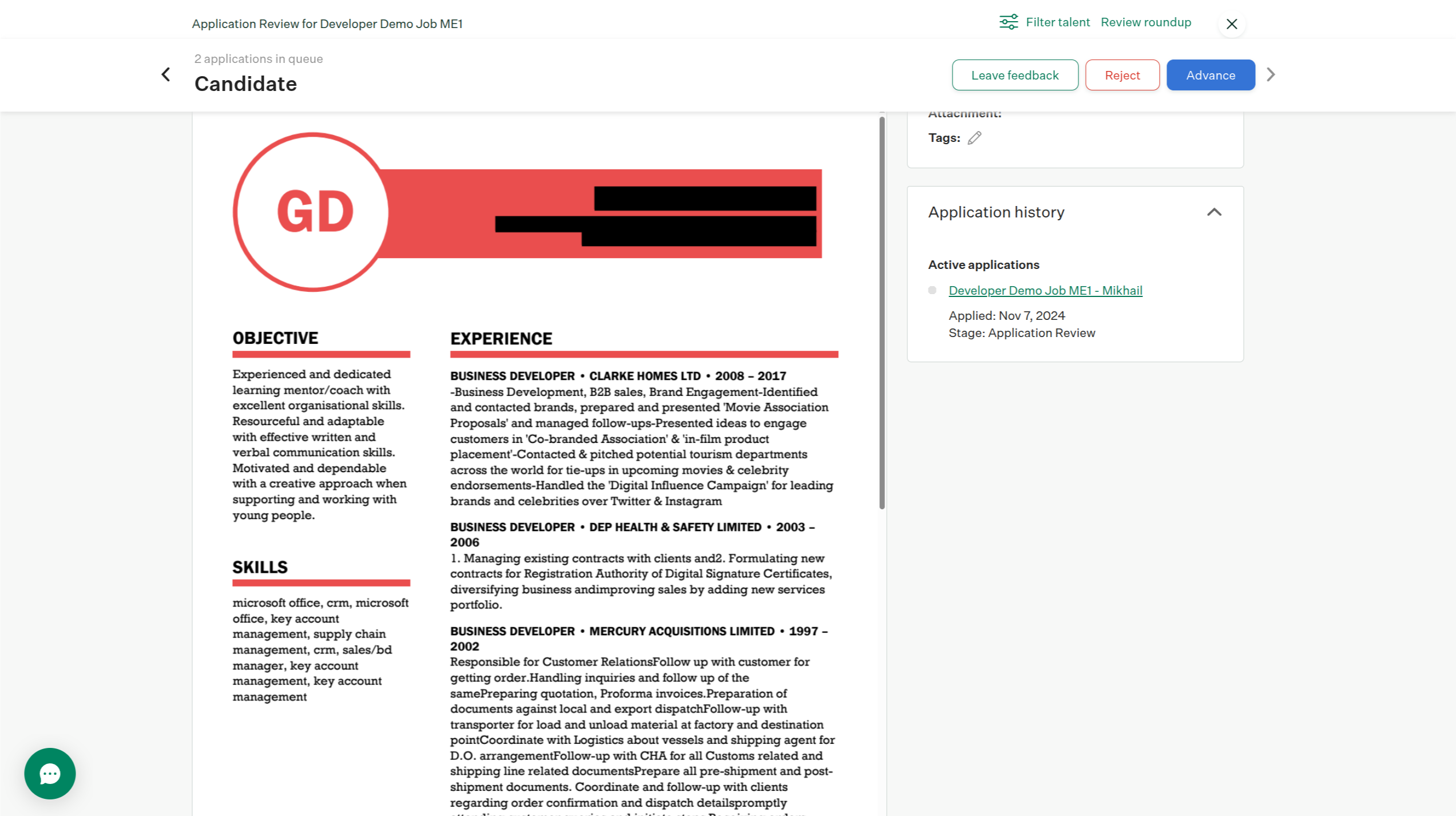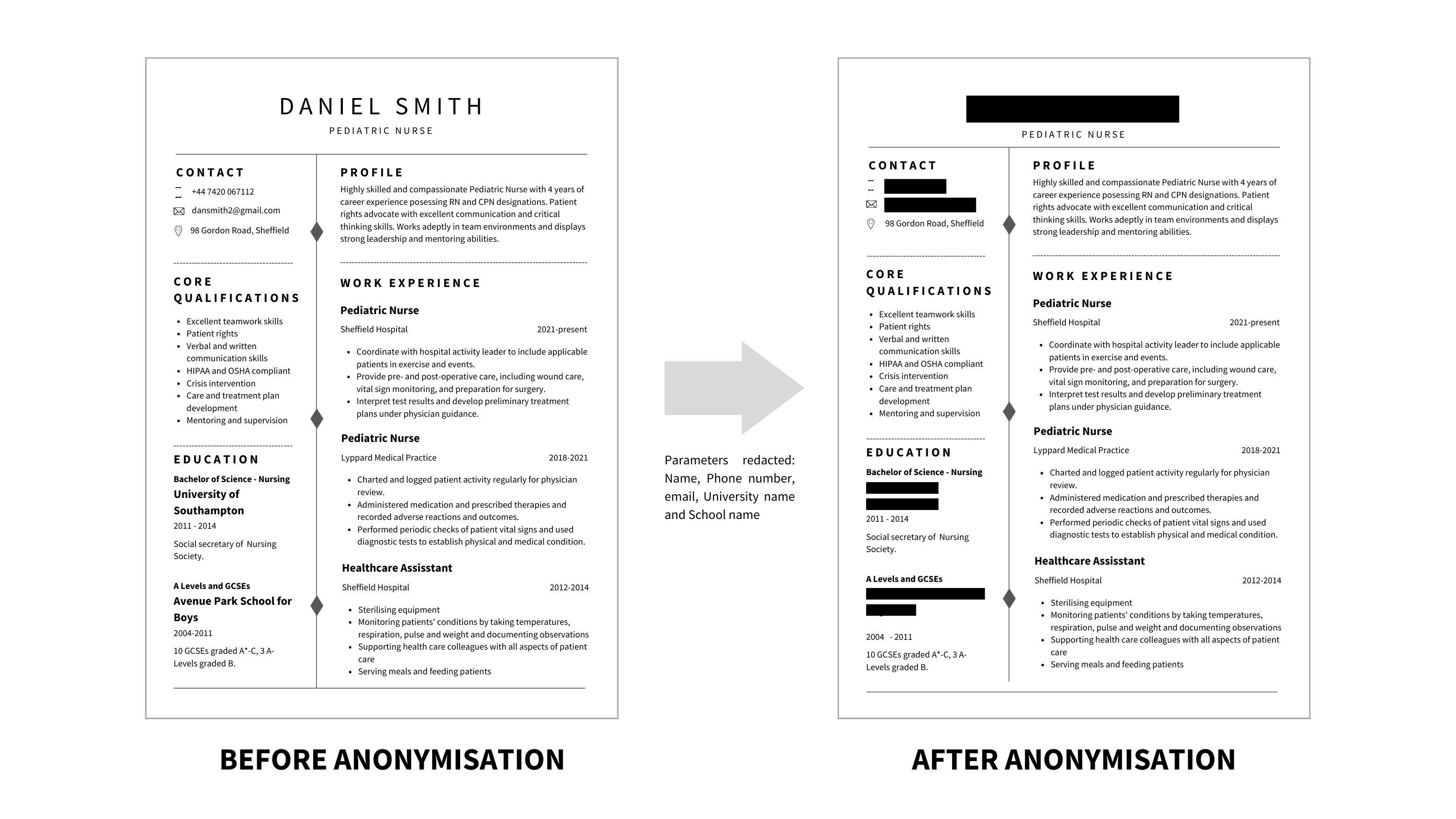 Industry-leading precision ensures that while personal details are removed, nothing important is lost. Every CV remains readable, relevant and ready for review.