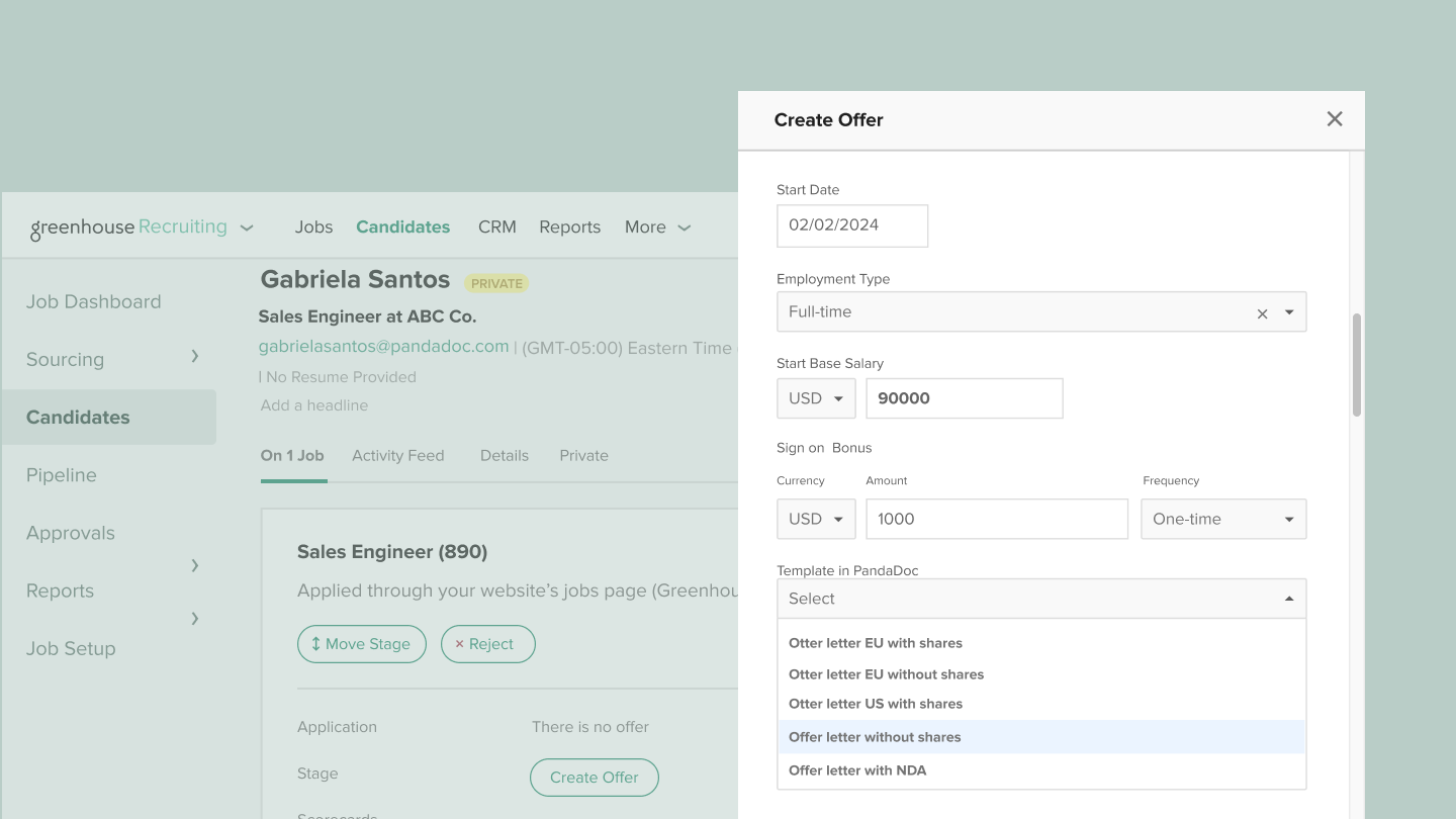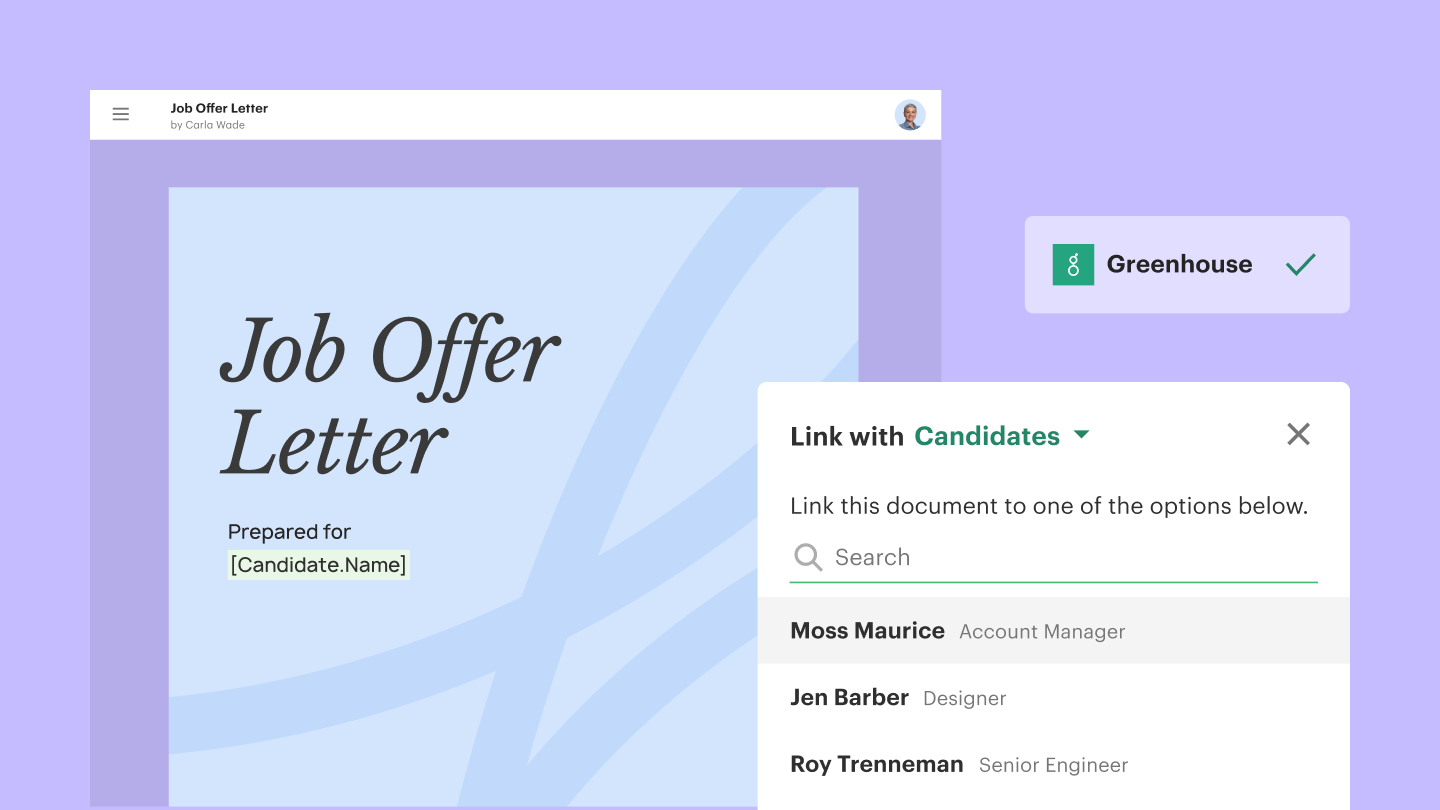 Optimize your hiring document management processes with the Greenhouse and PandaDoc integration, a synergy of technologies designed to elevate the candidate's signing experience and enhance your operational efficiency.