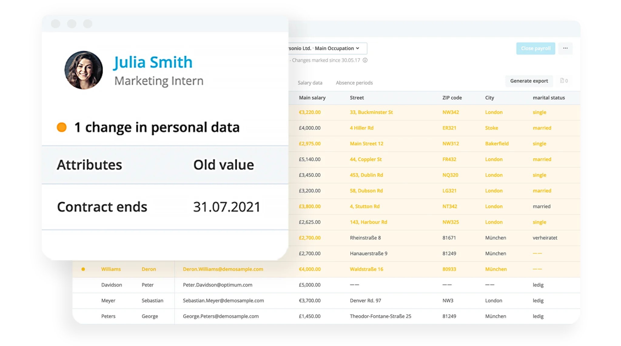 Customized access rights allow employees and managers to access information in the system independently. Delegate approvals to supervisors, save time by using handy templates for a range of documents and emails, and have Personio automatically remind you of important deadlines.