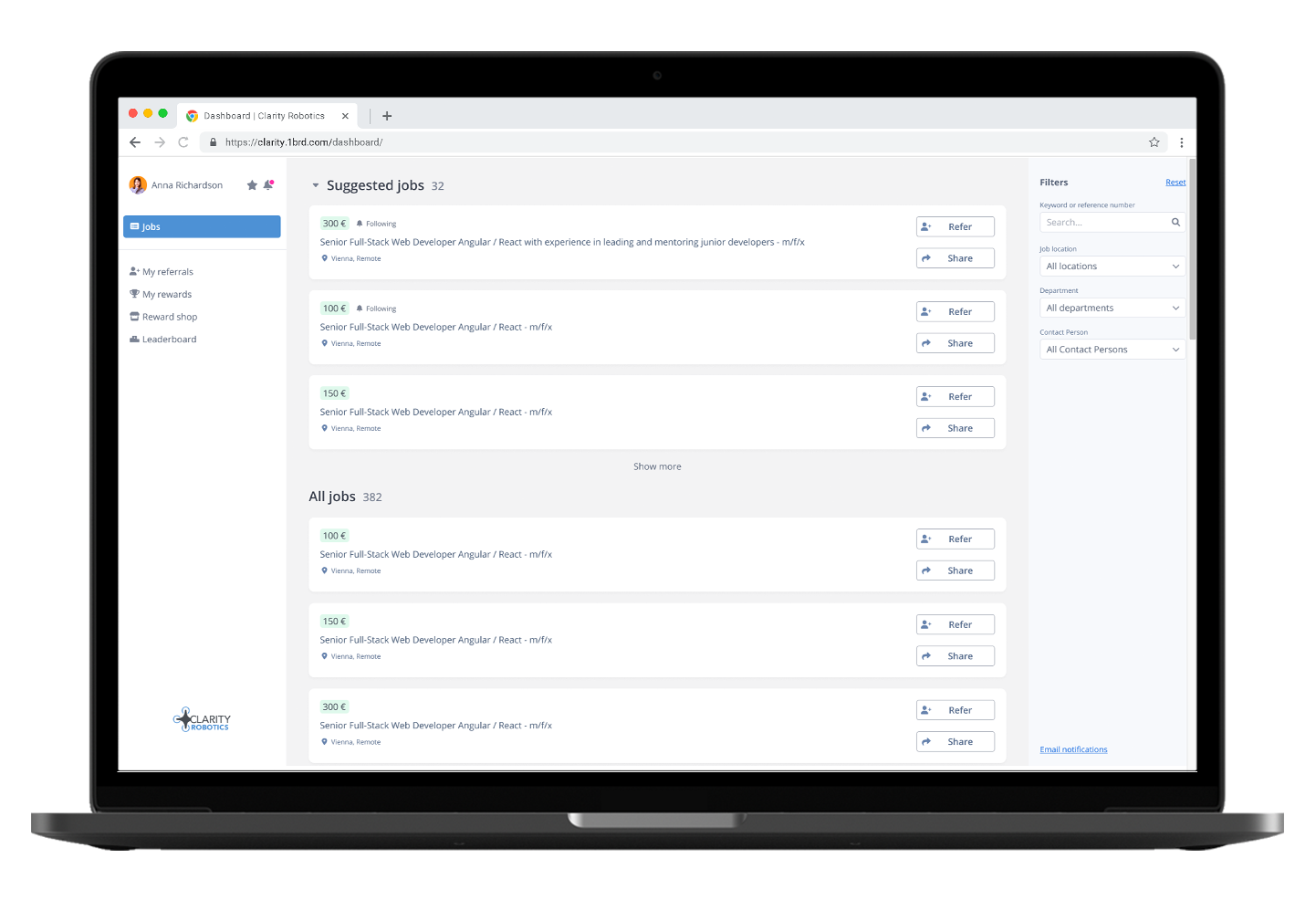 Since the beginning of 2022, Firstbird is part of the Radancy Group. Powered by our cloud-based talent acquisition platform, Radancy’s Employee Referrals helps you engage and incentivize your employees to reach more talent, attract high-quality candidates and recruit hard-to-fill roles. By seamlessly integrating into your workflow, we can help you create connections that count – helping you hire better talent, faster.