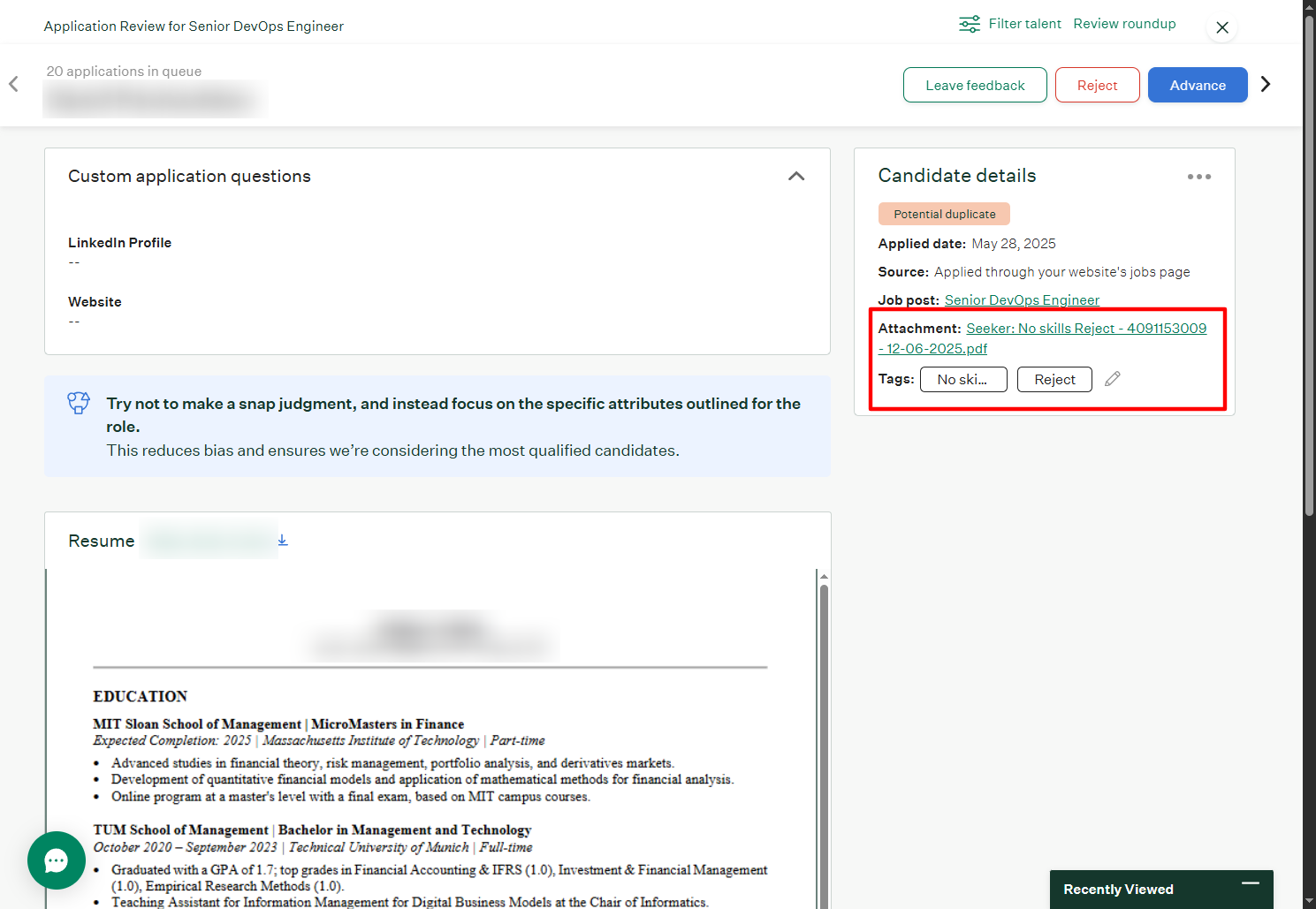 Seeker ranks candidates with AI, detects their skills, location and languages and attaches an AI scorecard to Greenhouse in real time