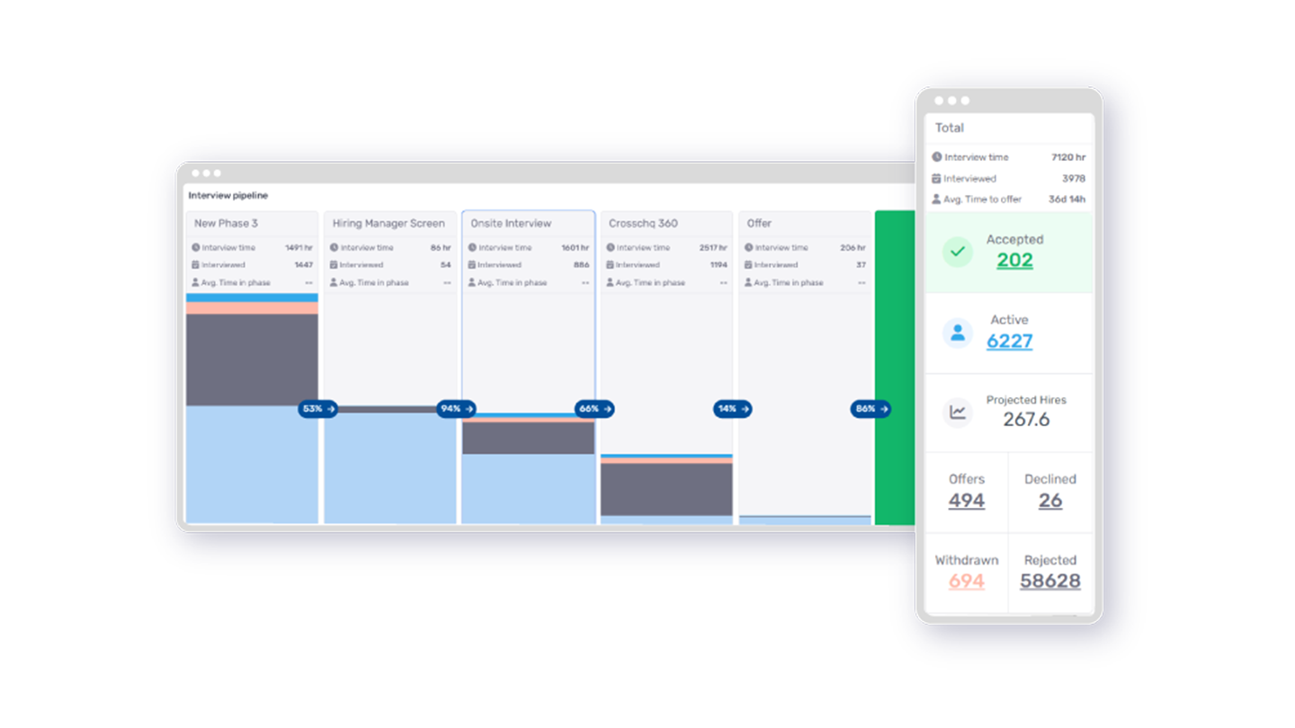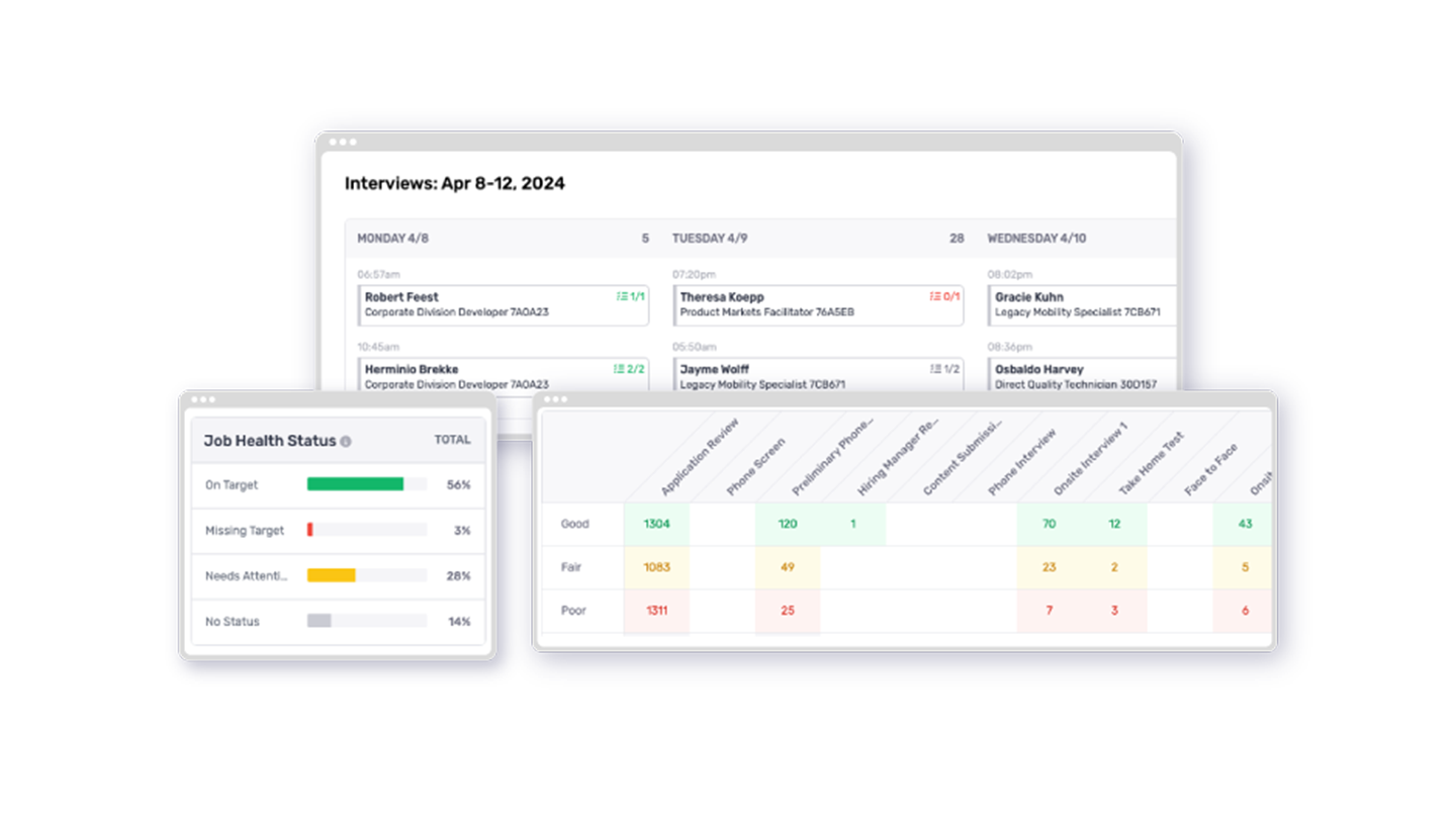 • Seamless Pipeline Visualization: Get full visibility into the health and hygiene of every active candidate and open role across your company