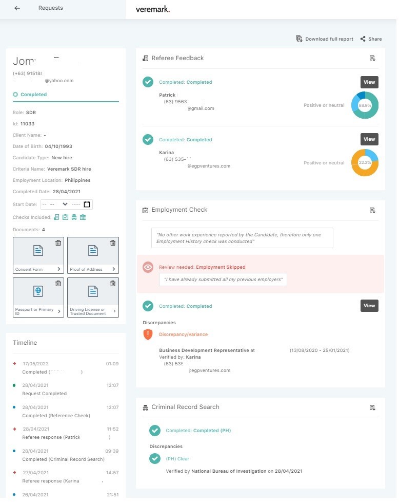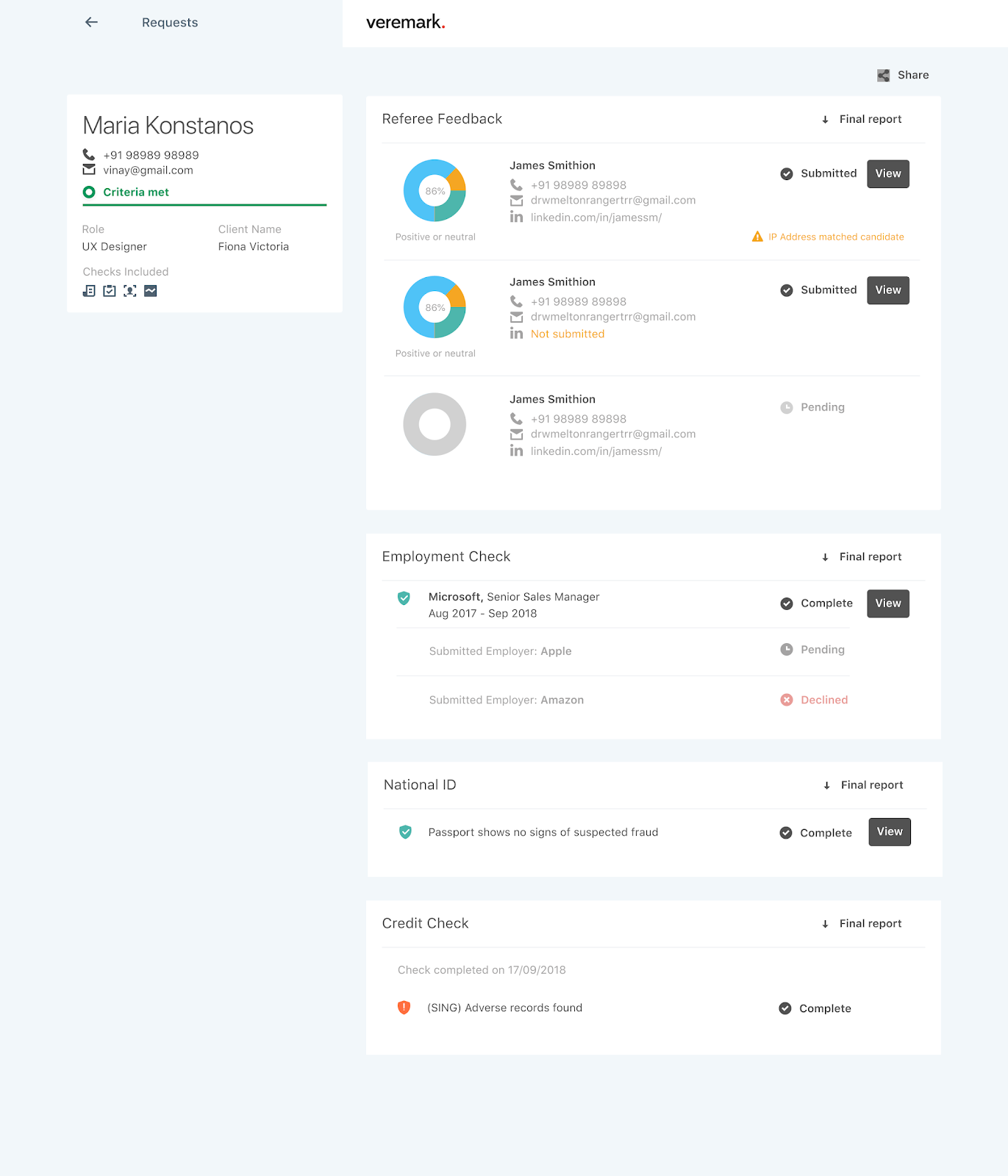 Veremark is a background screening and reference checking platform useable by any company that wants to hire with less risk.