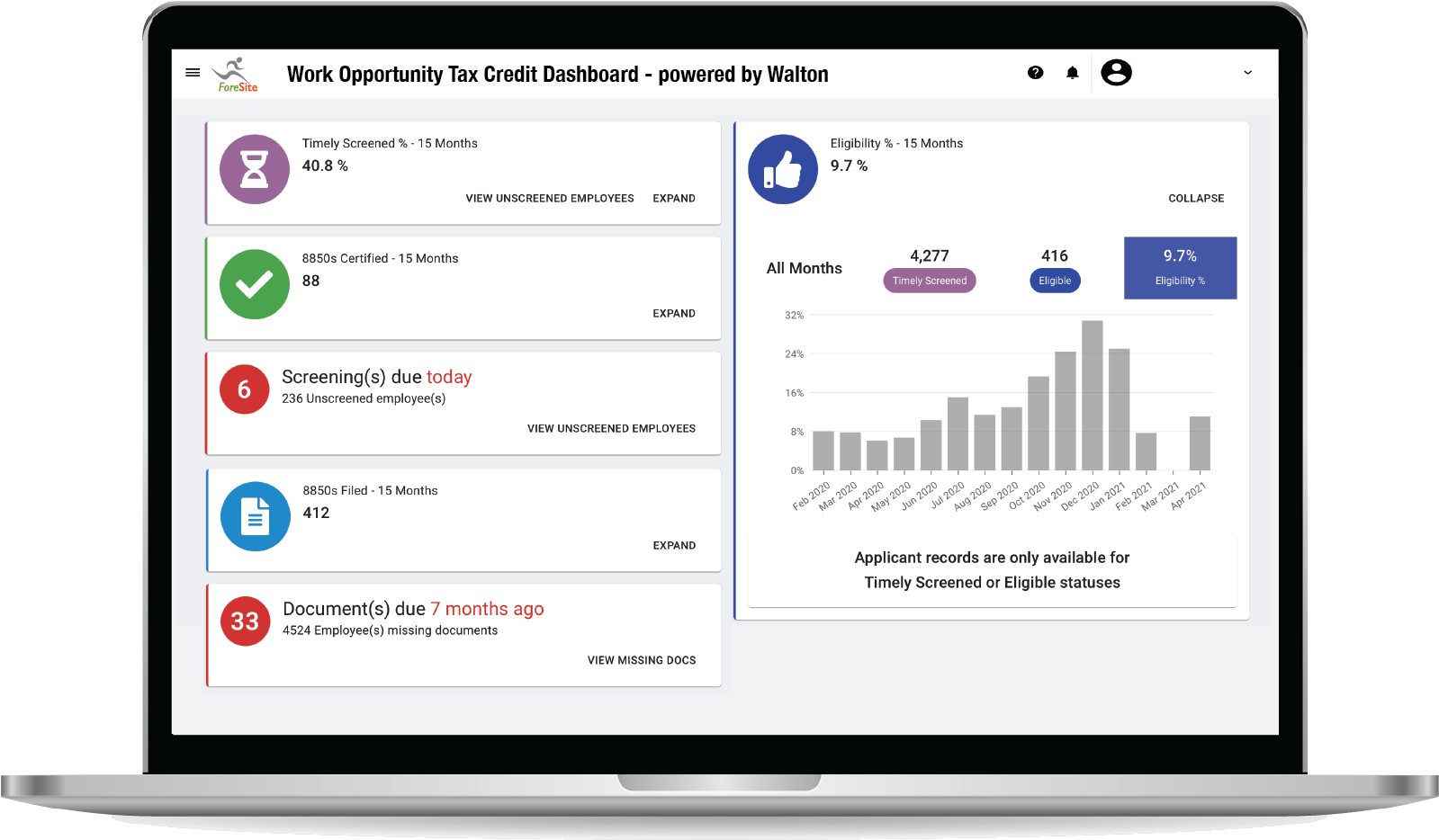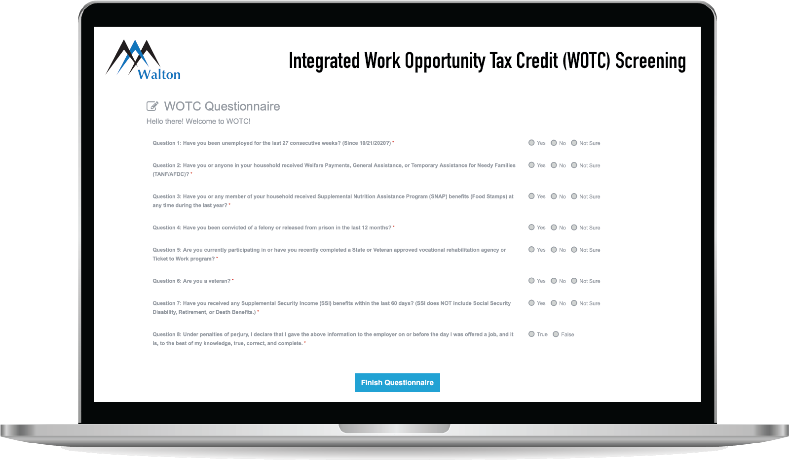 Companies that hires and retain WOTC eligible employees earn a tax credit of up to $9,600 per certified employee. These savings add up quickly, reducing a company’s federal taxes and increasing profitability. Walton delivers a proven, smart and simple solution that complies with the established government guidelines and simplifies the process for companies to maximize results with ease.