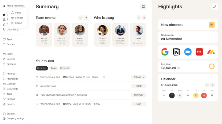 Zelt is a software application you can use to automate HR and IT tasks in your company. Now you can onboard new joiners, run payroll, manage holidays and automate IT tasks in a single system, from providing laptops to setting up accounts across your cloud applications. This saves you time and money, and is more secure.